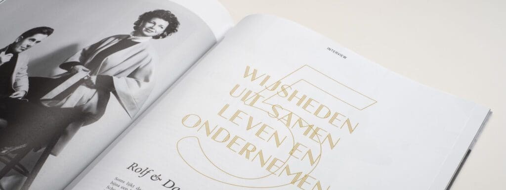 relatie, zowel zakelijk als privé, belangrijk is om hetzelfde doel voor ogen te hebben en tegelijk allebei andere kwaliteiten te bezitten. Twee keer hetzelfde is niks. Dat is de kern van onze relatie: balans. Als Rolf hetzelfde was als ik, dan hadden we allerlei ontwikkelingen nooit doorgemaakt en als ik hetzelfde was als Rolf, dan waren we met duizenden dingen tegelijk bezig en weet ik niet wat voor resultaat daaruit zou komen.”